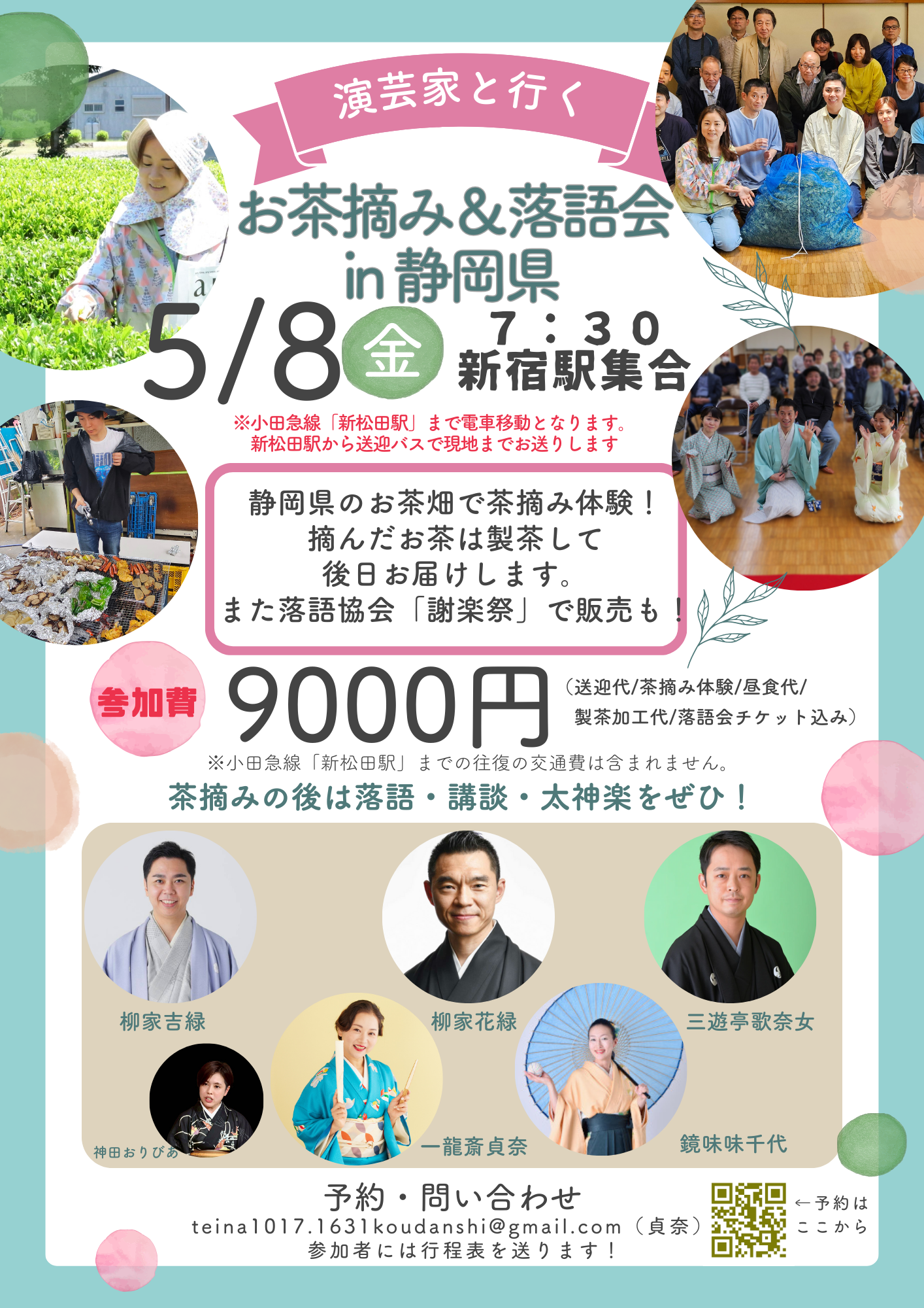 (送迎代/茶摘み体験/昼食代/製茶加工代/落語会チケット込み)