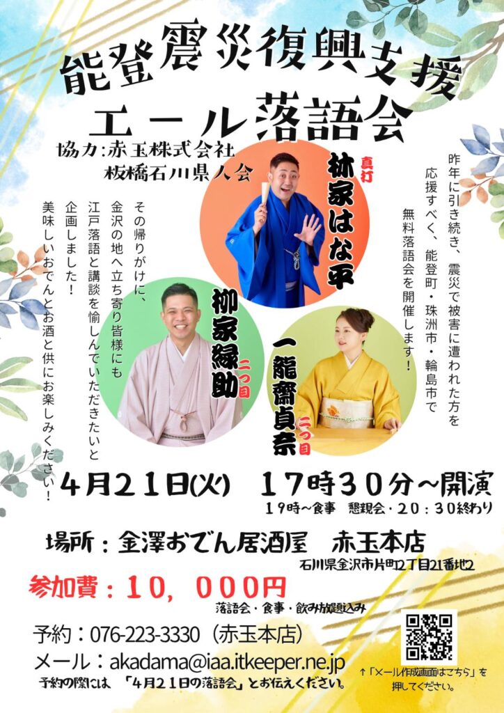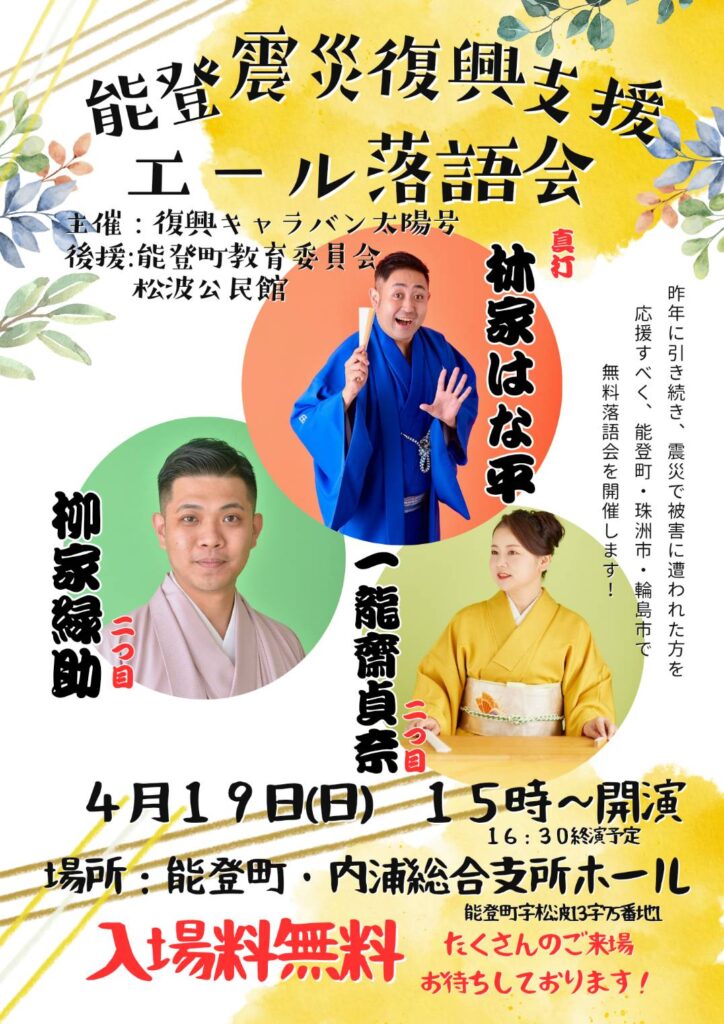 日時 4月19日(日) 開演 15:00~ 木戸銭 入場料無料 場所 能登町・内浦総合支所...
