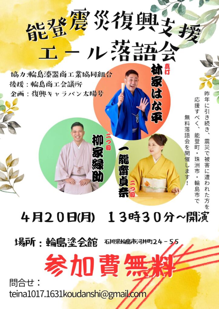 日時 4月20日(月) 開演 13:30~ 木戸銭 入場料無料 場所 輪島塗会館 石川県輪島... -